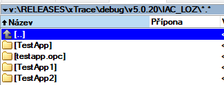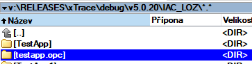 - na disku V: ve složce Debug v dané verzi xTrace a zákazníka (Viz obrázek) najdu aktuální debug verzi TestApp pracoviště