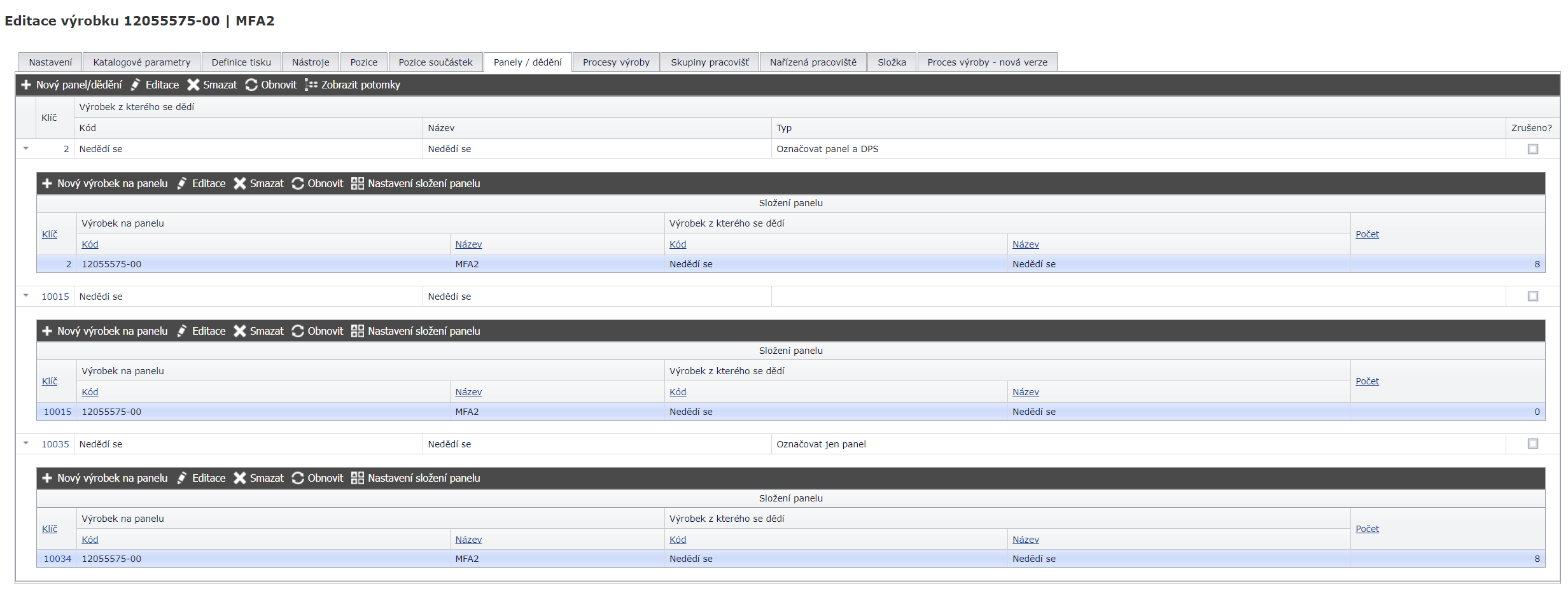 Je možné nastavit více druhů panelů pro jeden výrobek - panel který chceme použít si nadefinujeme na jobu