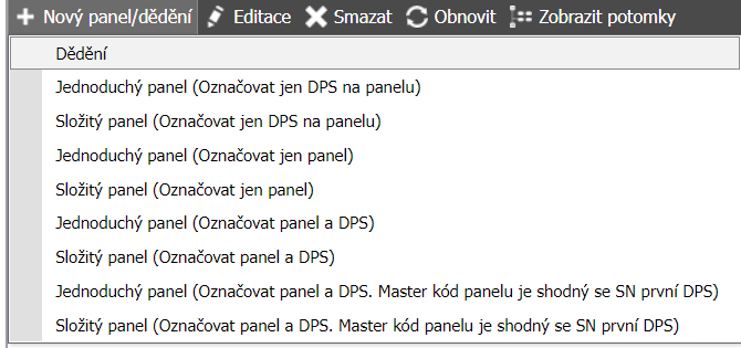Dále můžeme rozlišit značení panelu a to zda značíme barcode na panel, nebo na panel a DPS, nebo jen DPS