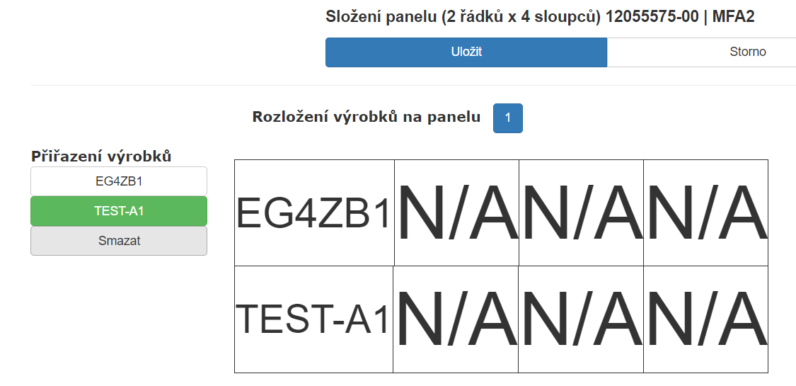 - Složitý panel vytvoříme tak že si nejprve nastavíme výrobky na panelu, výrobky následné můžeme i po uložení přidat/odebrat