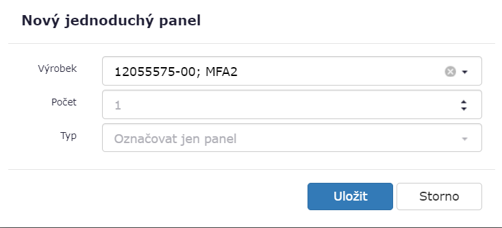 Jednoduchý panel nastavíme jeden výrobek (může být stejný jako výrobek na kterém aktuálně pracujeme nebo jiný)