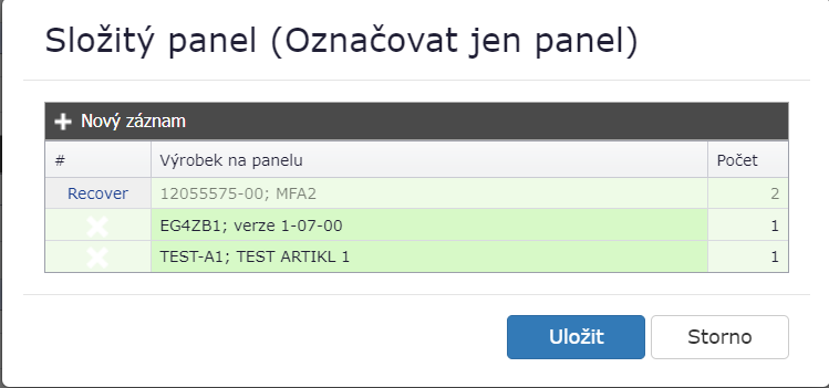 - Složitý panel vytvoříme tak že si nejprve nastavíme výrobky na panelu, výrobky následné můžeme i po uložení přidat/odebrat