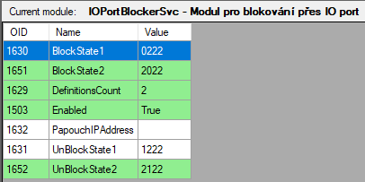 - nastavit parametry UnBlockState1 a 2, tak aby první a druhý byl stav 1-zapnuto a ostatní 222(neutral)