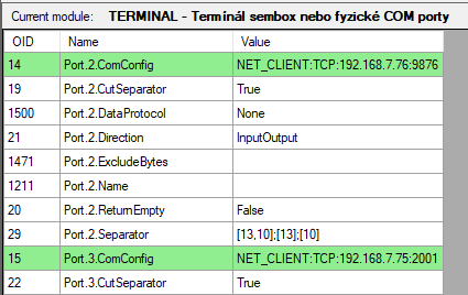- v závorkách {druhá pozice číslice 2 a 3} jsou porty, které je třeba nastavit v modulu Terminal