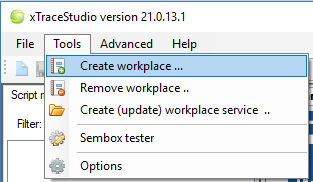 - V hlavním menu Tools (Nastavení) zvolíme položku Create Workplace... (Vytvořit pracoviště...)