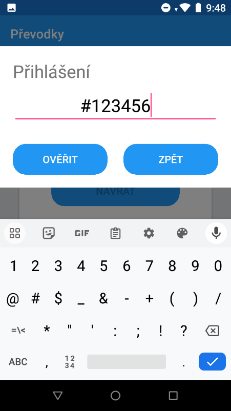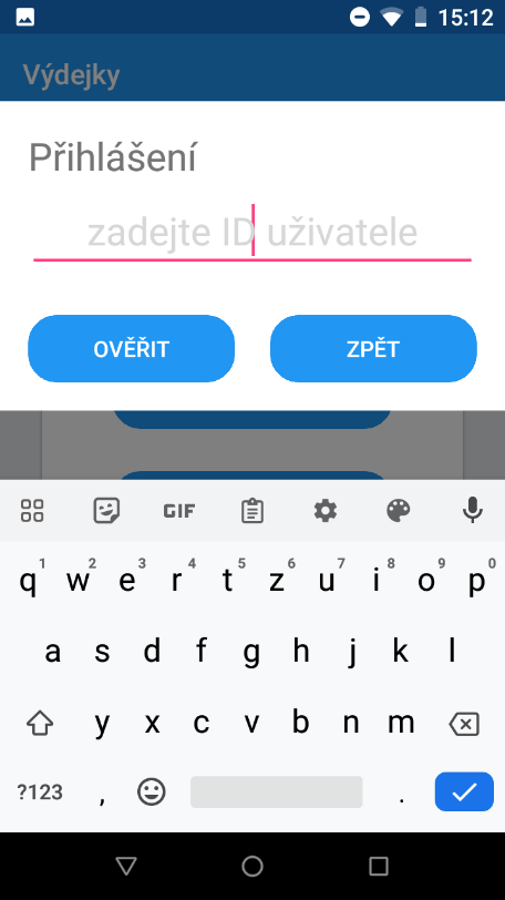 Před začátkem práce s aplikací je nutné, aby se uživatel do aplikace přihlásil, to provede načtením karty uživatele např. „#123456“ a nebo verifikací přes RFID kartu pomocí čtečky RFID.
