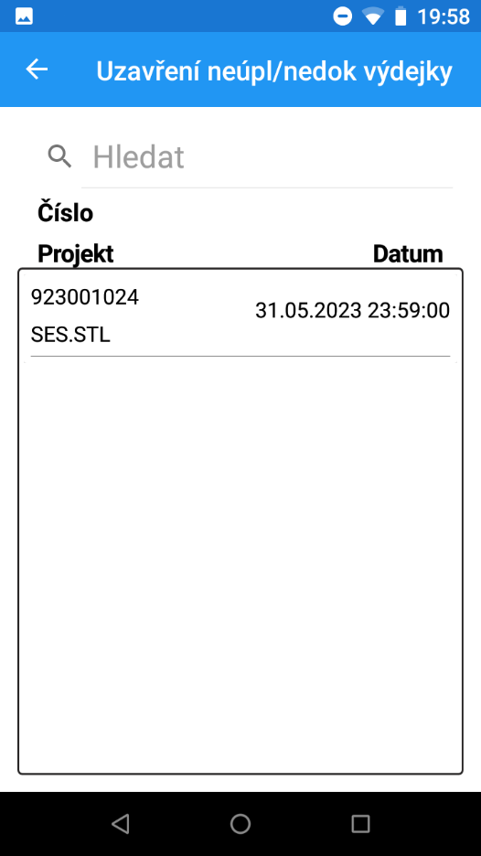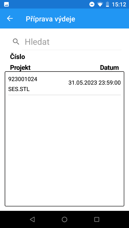 Operátor může přejít do plnění existujících výdejek kliknutím na danou položku.