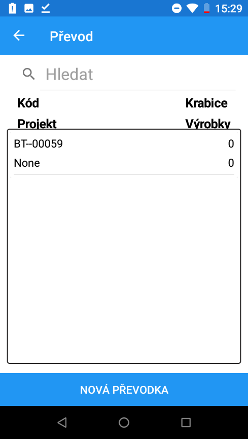 Operátor může založit novou převodku kliknutím na tlačítko „Nová převodka“.