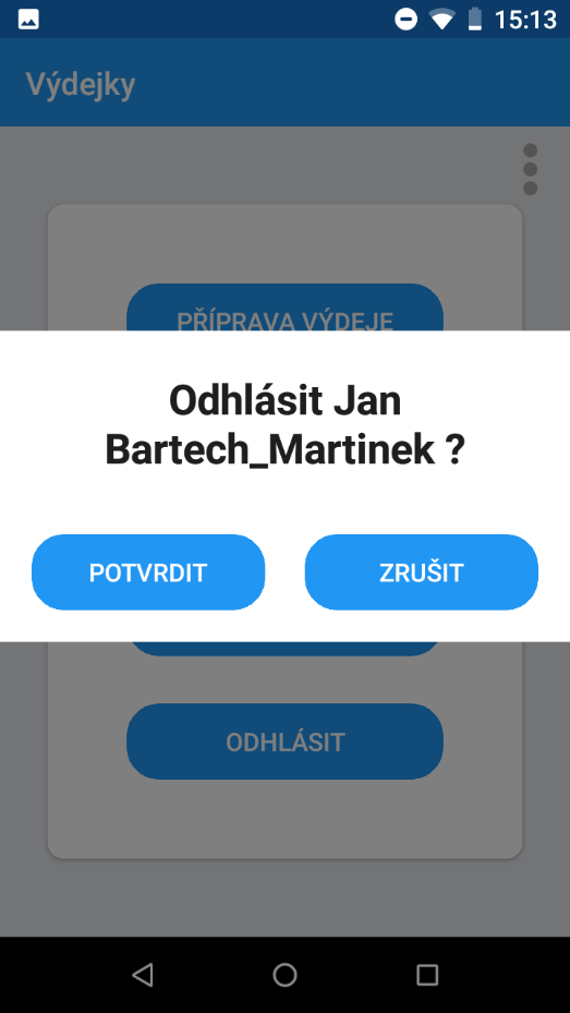 Operátor se může po kliknutí na tlačítko „Odhlásit“ odhlásit po potvrzení, zda se opravdu chce odhlásit což provede kliknutím na tlačítko „Potvrdit“ a nebo svou volbu může zrušit kliknutím na tlačítko „Zrušit“.