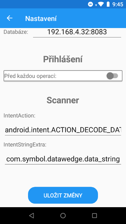 Nastavení se skrývá v poli „Databáze“, ale skutečně se tam musí zadat IP adresa serveru se spuštěným web api i s portem, který by měl být otevřen pro příchozí i odchozí data typu TCP tak UDP.