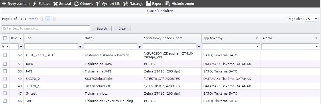 | Kód | Označení tiskárny, které se zadává do xTrace studia Core modul PRINTSERVER parametr Print_Server_Printers |