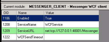 Dále pak na mít u tohoto TSPRX1 pracoviště mít nastavený v CoreModules modul Messenger_client s těmito parametry: