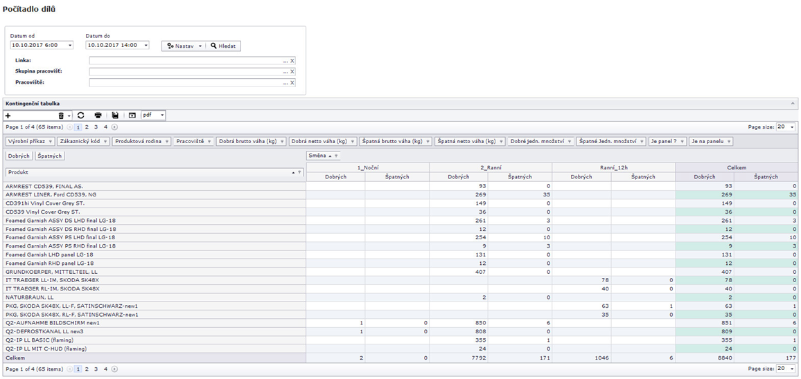 zdrojem dat pro kontingenční tabulku jsou počitadla vyrobených dílů