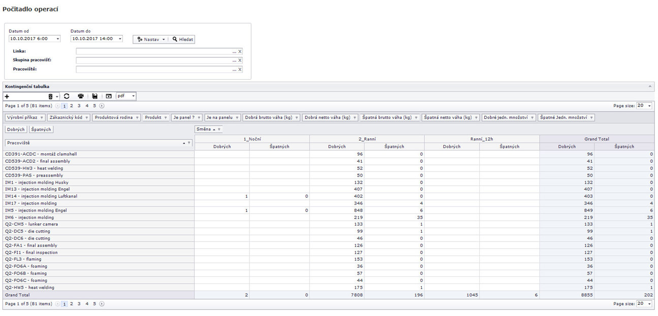 zdrojem dat pro kontingenční tabulku jsou počitadla výrobních operací