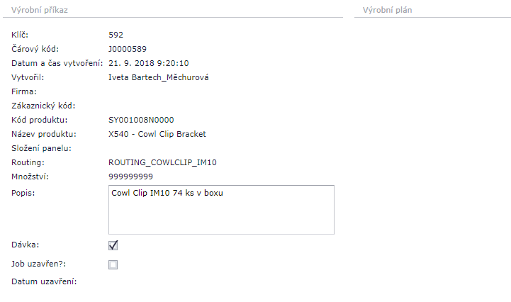 - Výrobní příkaz