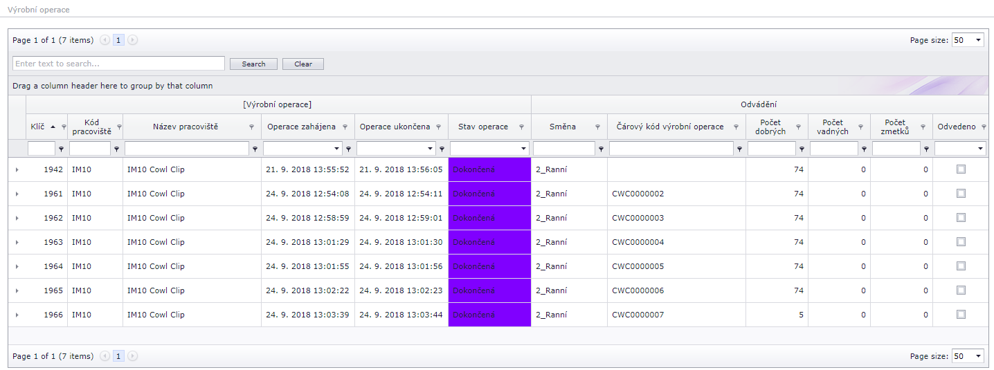Vyhledávání výrobní dávky u dávkové výroby