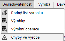 Doporučení: pro hledání chyb, vyberte jen jedno ze tří kritérií Linka, Skupina pracovišť, Pracoviště. Vyhledávací funkce by totiž nemusela najít požadovanou operaci, pokud by byly zadány všechny kritéria. Doporučejeme tedy, pro rychlejší dohledávání ať už chyb, ale i jiných dat, použít kritérium pracoviště, nebo skupinu pracovišť.