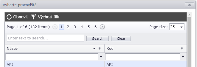 kdy se nám otevře podokno s daným typem dat. např pro parametr Pracoviště: a vybereme (2x kliknutí) daný typ pracoviště, na kterém chceme hledat chyby
