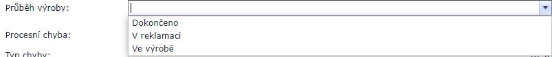 | Průběh výroby | Fáze výroby kde došlo k chybě |
