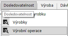 Doporučení: pro hledání výrobní operace, vyberte jen jedno ze tří kritérií Linka, Skupina pracovišť, Pracoviště. Vyhledávací funkce by totiž nemusela najít požadovanou operaci, pokud by byly zadány všechny kritéria. Doporučejeme tedy, pro rychlejší dohledávání ať už operací, ale i jiných dat, použít kritérium pracoviště, nebo skupinu pracovišť.
