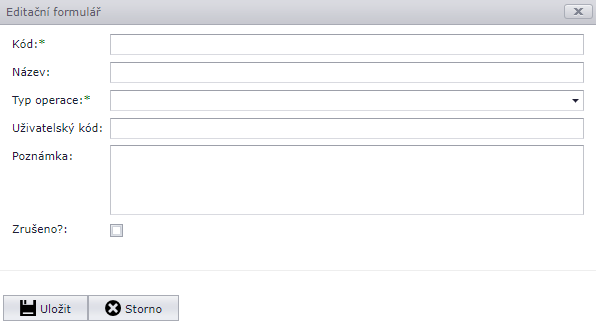 Číselník slouží pro zadání kódu, názvu, typu operace a popisu kontrolní operace