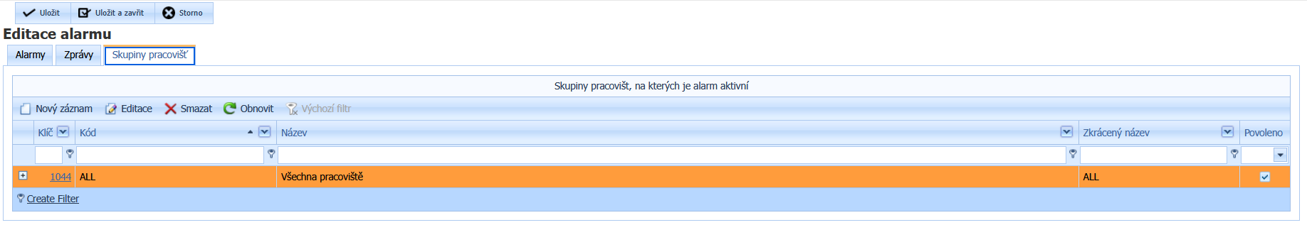 V editačním formuláři alarmu, v záložce Skupiny parcovišť: