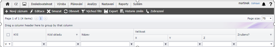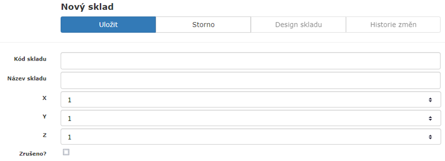 Nový Sklad vytvoříme kliknutím na Nový záznam v záhlaví stránky.
