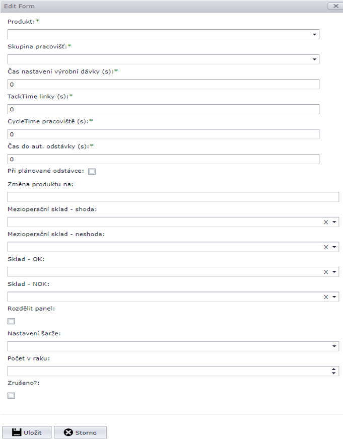 Samozřejmě musí být vyplněn počet kusů v racku buď v tomto procesu výroby či na celém produktu, a také na které skupině pracovišť se má tato operace provést.