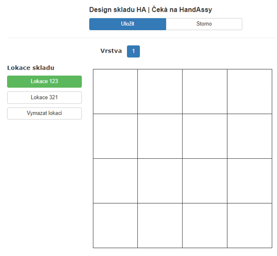 Nastavení je jednoduché, v levém sloupci si vyberete, kterou lokaci chcete přiřadit a na mřížkovém znázornění velikosti skladu dle definovaných parametrů X (definuje délku), Y(definuje výšku), Z (definuje vrstvy), můžete nastavit, která lokace se nachází na kterém umístění ve skladu.