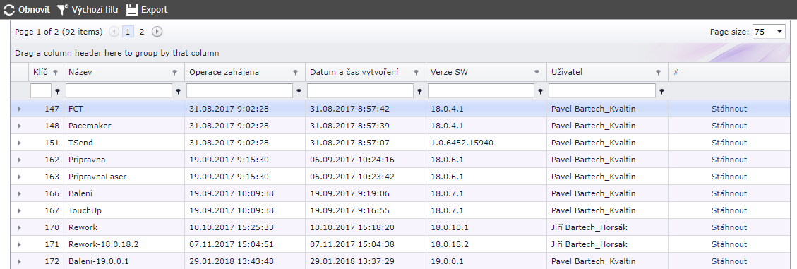 - Dále se dá seznam exportovat do xml, csv a pdf