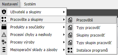 Pro nastavení výroby je zapotřebí Nastavení pracovišť Jednotlivá pracoviště shlukujeme do skupin pracovišť pro snazší nastavování procesů výroby, blokování, pracovního postupu výroby (routingu), alarmů apod.
