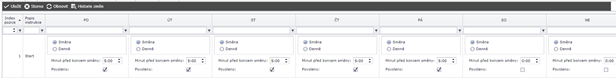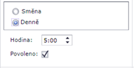 Instrukce se nastavuje, kdy se má spustit a to buď na směnu, nebo denně v určitý čas, podle toho co zvolíte, se přemění i pole se zadáváním hodnot času (viz obrázek)