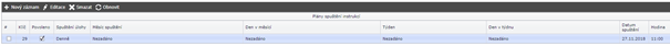 - Datum spuštění – je kdy se má instrukce poprvé zaplánovat do plánu údržby na pracovišti, aby zde nebyl aktuální datum, kdy by se nastavované instrukce na pracovišti neprojevily ihned na pracovištích
