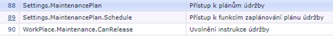 - CanReleaseSecurityAction – zabezpečovací akce, pro kontrolu odblokování pracoviště. Pokud je prázdné nekontroluje se. Defaultní nastavení je WorkPlace.Maintenance.CanRelease