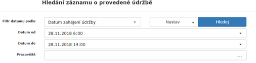 3)Filtr pro dohledání výstupní protokoly pro plány údržby