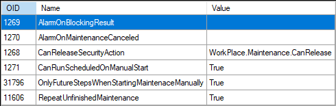 - OnlyFutureStepsWhenStartingMaintenanceManually - určuje, zda se při ručním vyvolání údržby mají použít všechny kroky údržby nebo pouze ty co jsou naplánované v budoucím čase aktuální směny. Defaultní hodnota True