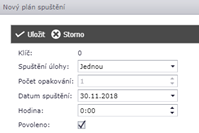- Novým záznamem na nástrojové liště spustíme okno pro Nový plán spuštění dané instrukce