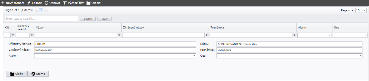 Nový blokovací režim vytvoříme pomocí "Nového Záznamu" na nástrojové liště.