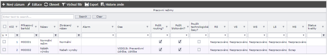 OEE: Zapnutí tohoto režimu se pracoviště přepne do odstávky