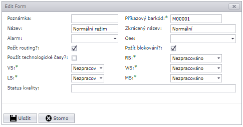 Pomocí čárového kódu lze přepnout pracoviště do jiného pracovního režimu, kdy se vyrábí díly nestandardním způsobem.
