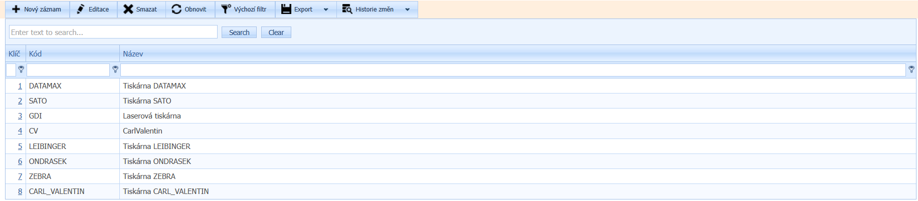 - zadáváme zde kód, většinou název typu, druhu etikety a do názvu, např. název typu tiskárny