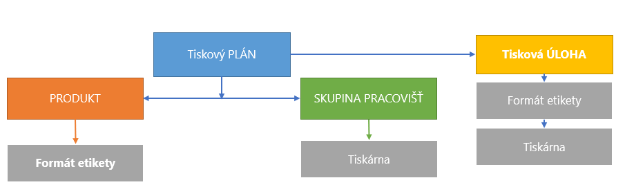 - pokud v plánu není žádná úloha aktivní, u produktu se kontroluje a nastavuje plán (formát etikety), který se tiskne