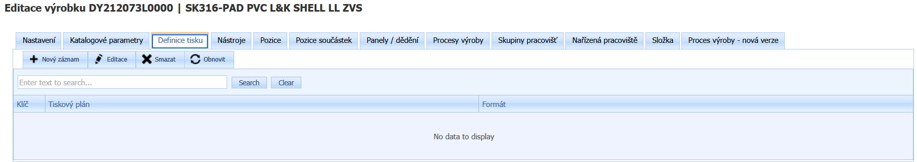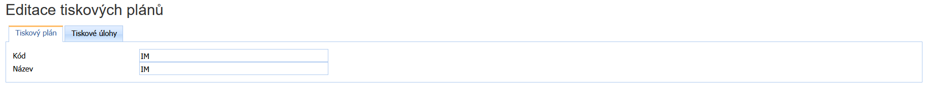 Editační formulář obsahuje dvě záložky, první je tiskový plán, data můžeme změnit pro tiskový plán