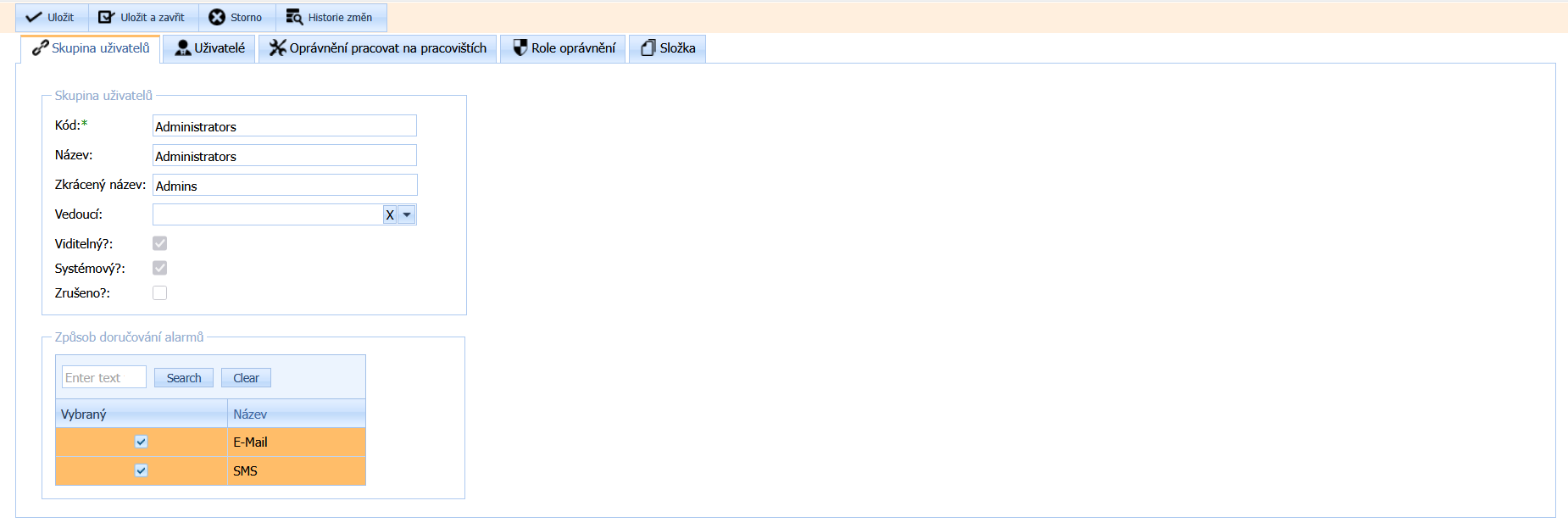 Zrušeno: parametr udává skupině uživatelů status zrušena - v sestavě skupin uživatelů ve filru sloupce Zrušeno, bude pak zadána hodnota ANO