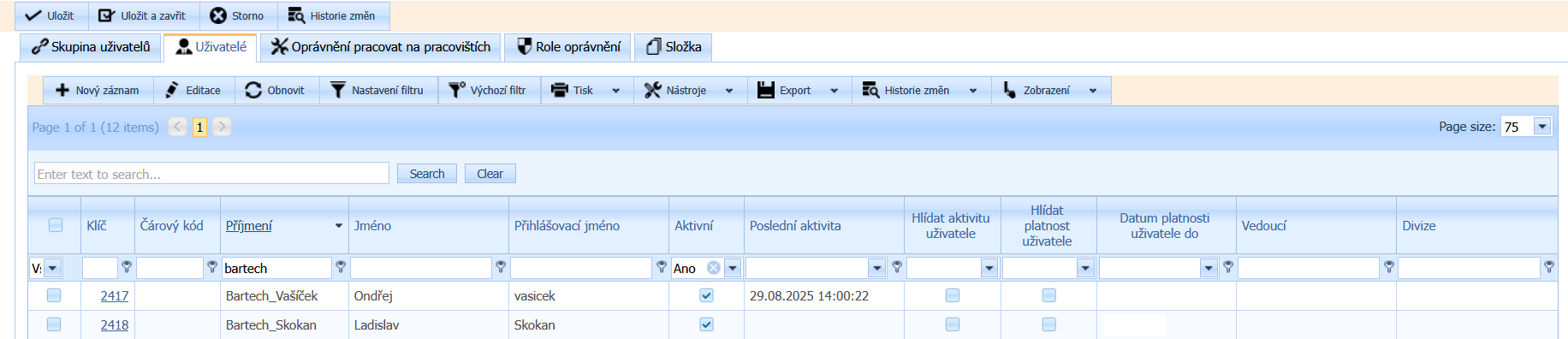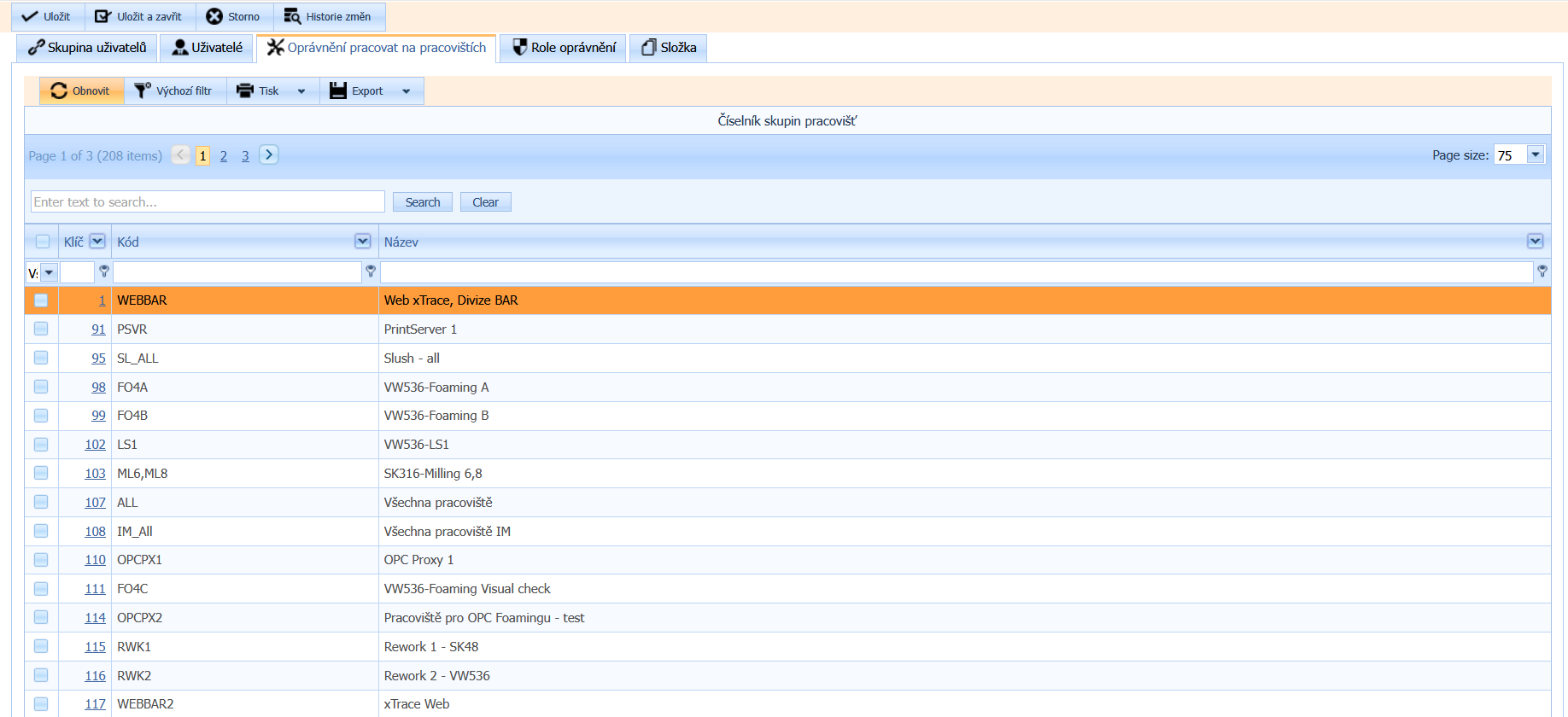 zde ve skupinách pracovišť, přiřazujeme právo uživatelům skupiny pracovišť oprávnění pracovat na vybraných pracovištích