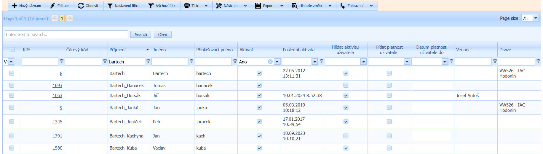 Vedoucí: Uživatel který je vedoucím (leadrem) skupiny uživatelů