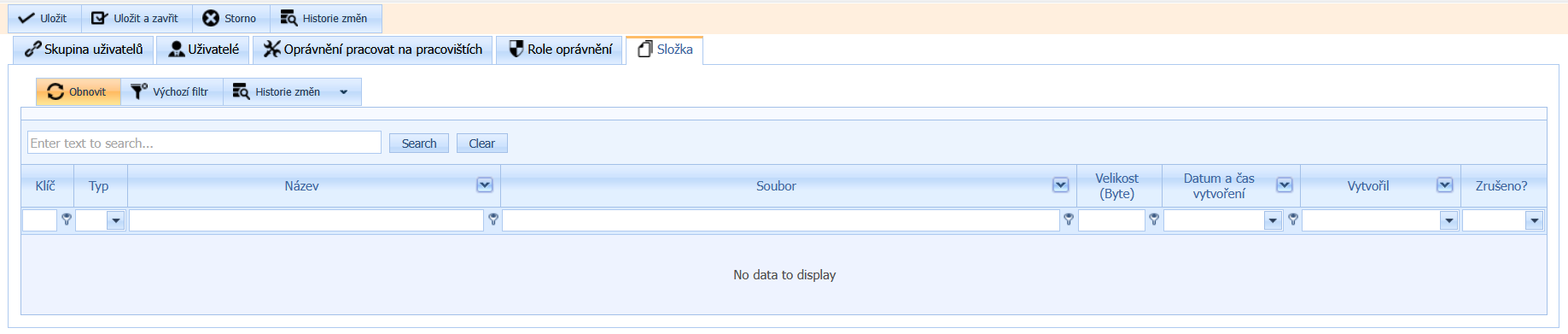 Zde můžete ukládat soubory o skupině uživatelů, které o ní evidujete mimo systéme xTrace, tak abyste měli všechny informace komplexní, a to pomocí tlačítka pro nahrání souboru na nástrojové liště