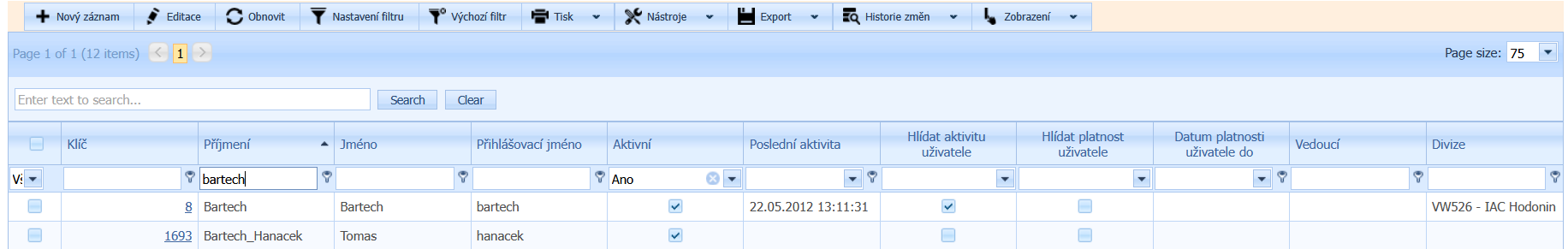 Výchozí filtr - nastaví číselník uživatelů do standartního zobrazení bez vybraných filtrů