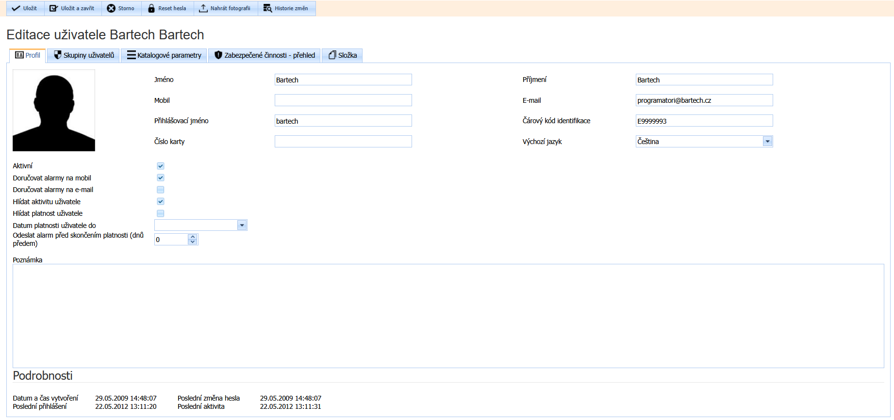 Editace - po vybrání daného uživatele, spustíte jeho editace