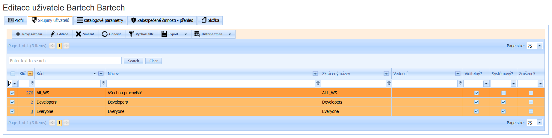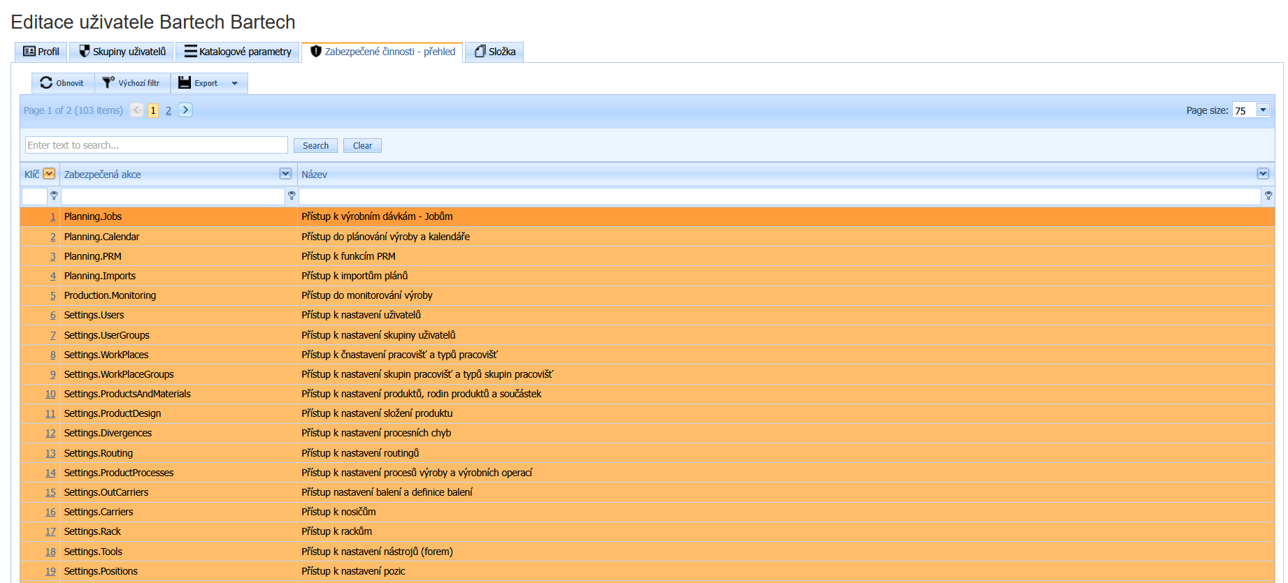 dafa zabezpečené činnosti jsou zde jen pro přehled, nelze zde editovat, jsou to systémově přiřazené zabezpečené činnosti pro daného uživatele, podle toho do které skupiny uživatelů byl přiřazen a jaké zabezpečené činnosti má skupina povolena.